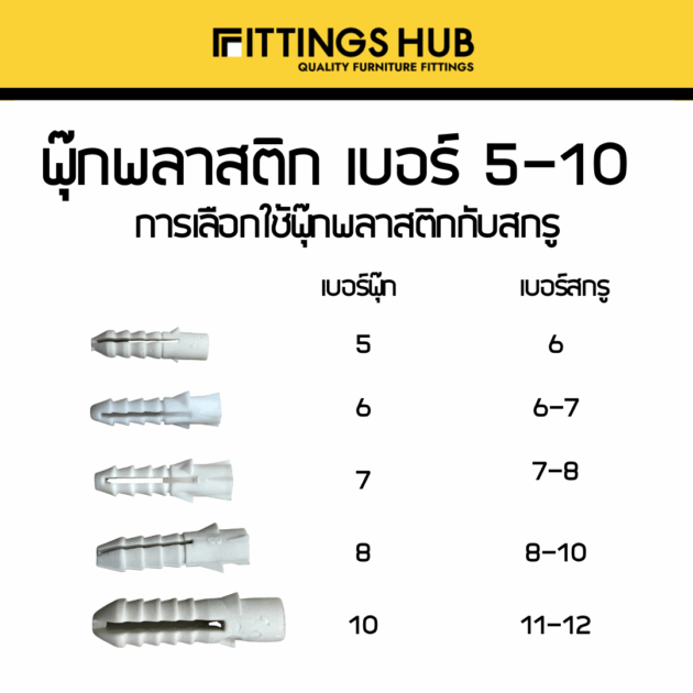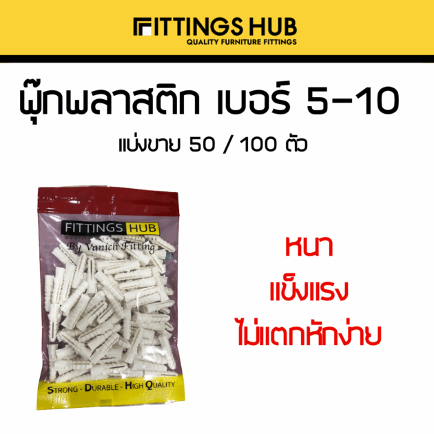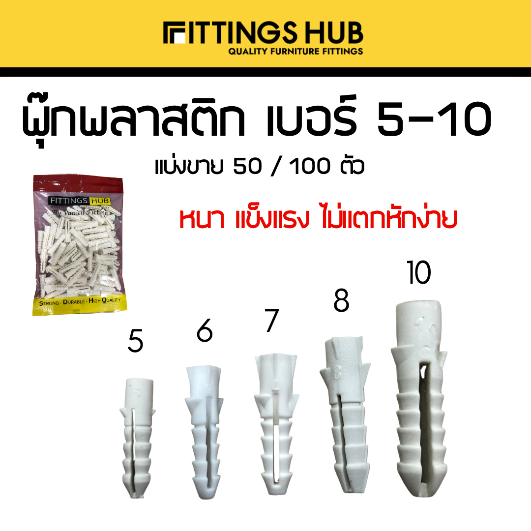 (50/100 ตัว) พุ๊ก ปุ๊ก พลุ๊กพลาสติก เบอร์ 5-10 – บรรจุซอง