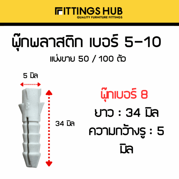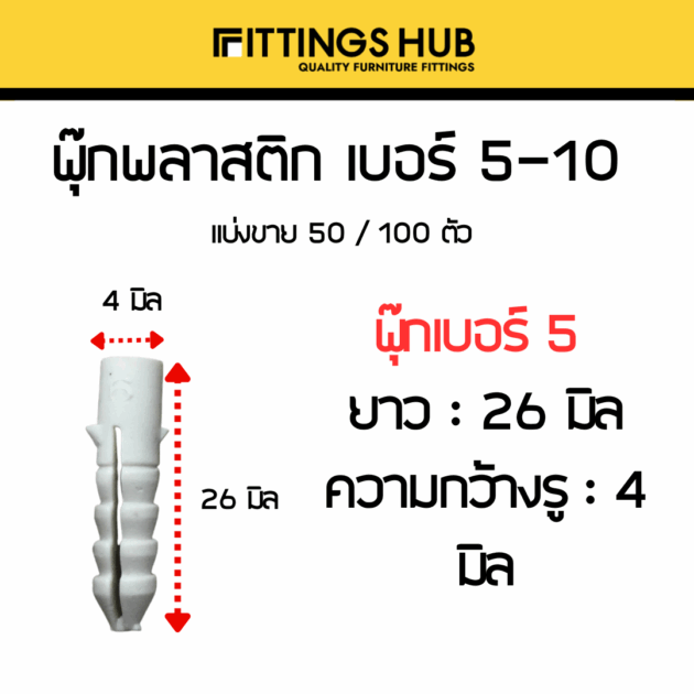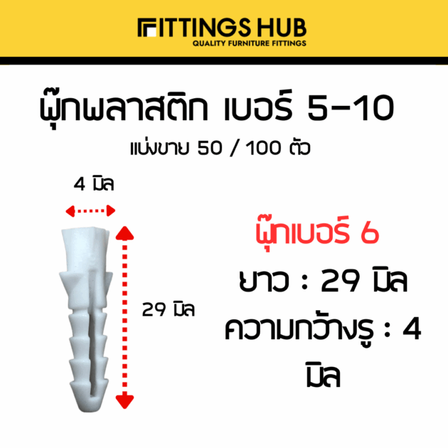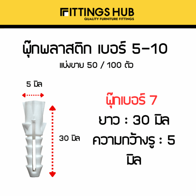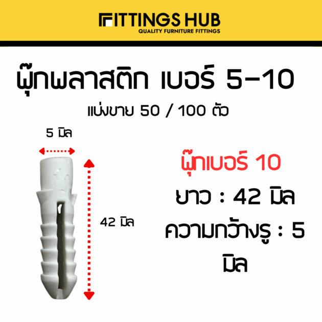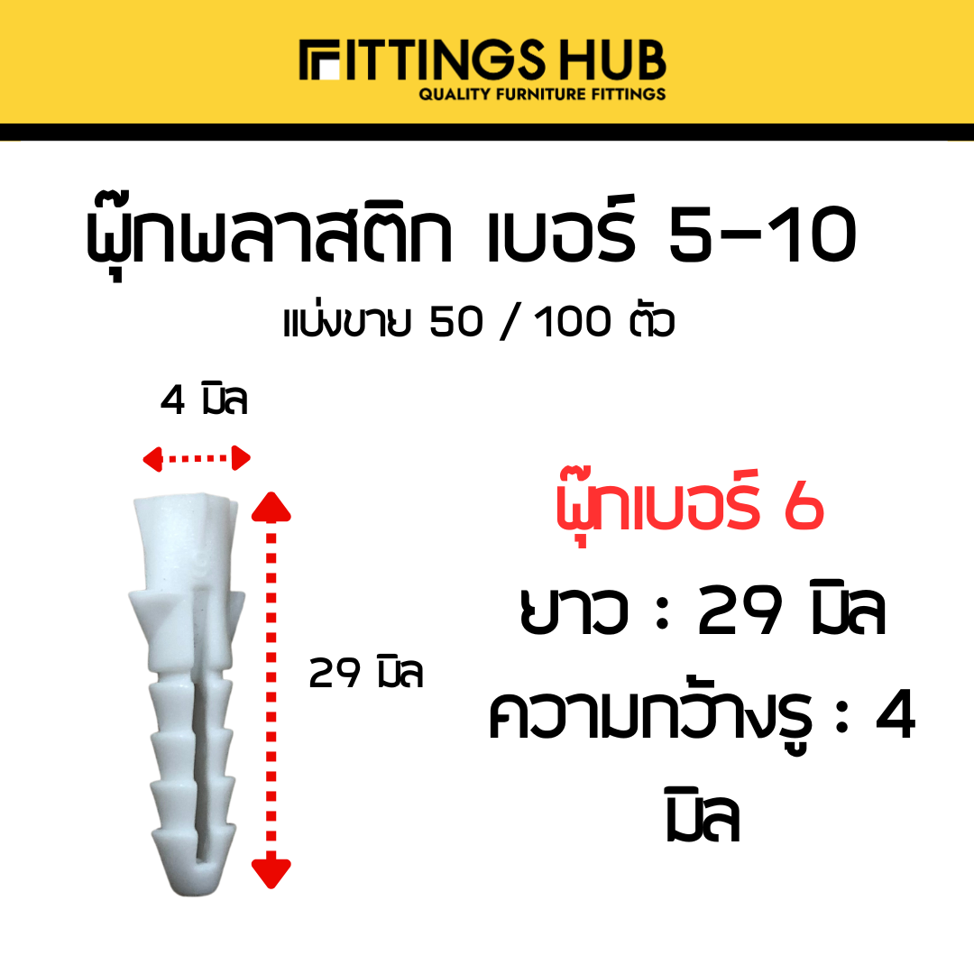 [50/100ตัว] พุ๊กพลาสติก เบอร์5-10