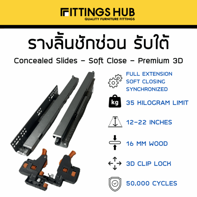1ออเดอร์ บรรจุ: รางลิ้นชัก 1 ชุด + สกรู 12 ตัว
