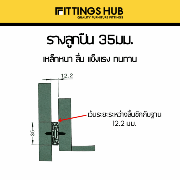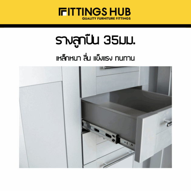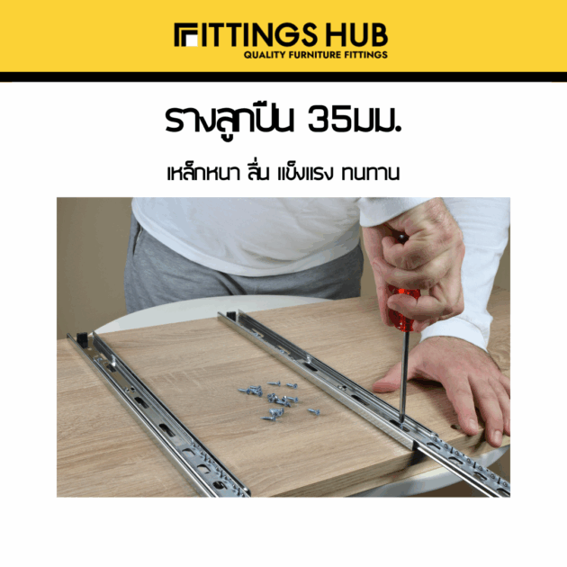 รางลิ้นชักลูกปืน 35มม พร้อมสกรู แข็งแรง ทนทาน FittingsHub