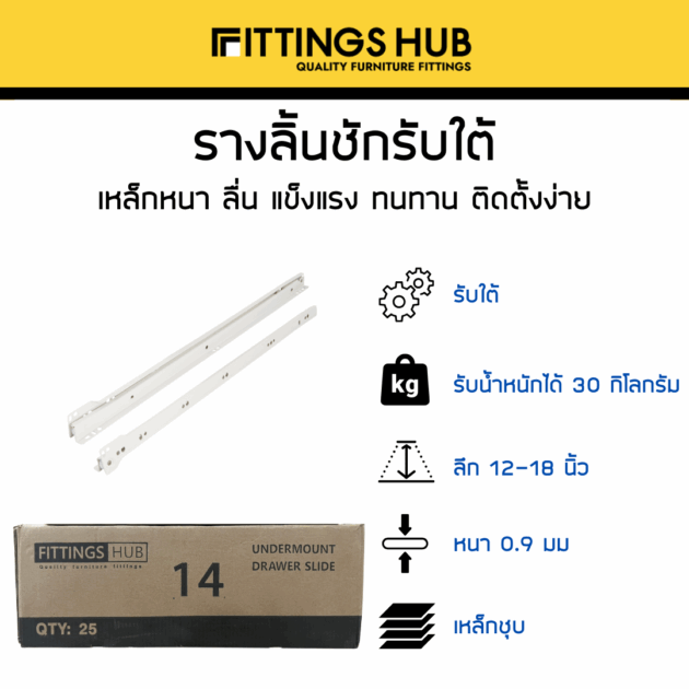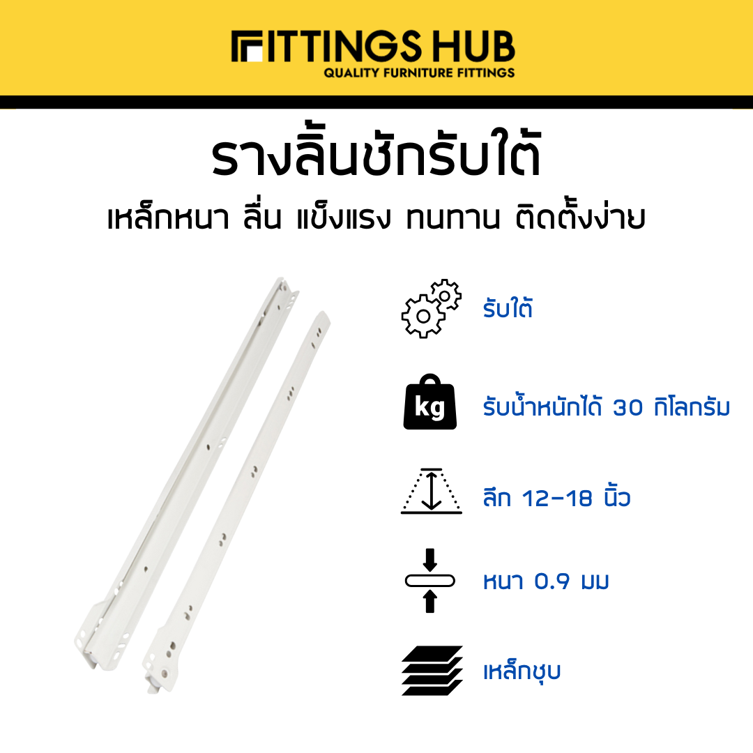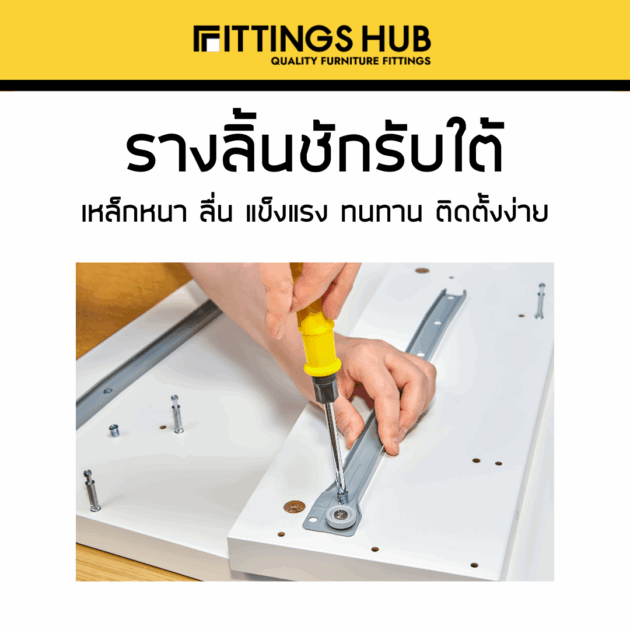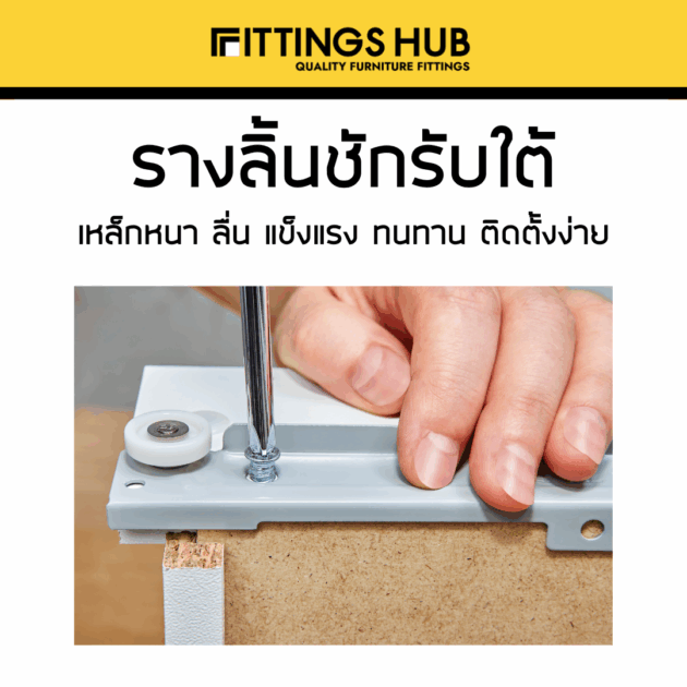 รางลิ้นชักลูกล้อ รับใต้ ยี่ห้อ Fittings Hub แท้