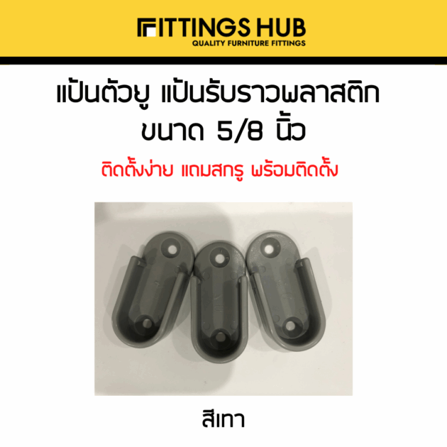 Be the first to review “แป้นรับราว พลาสติก สีเทา 5/8- 1คู่ + สกรู 2 ตัว”