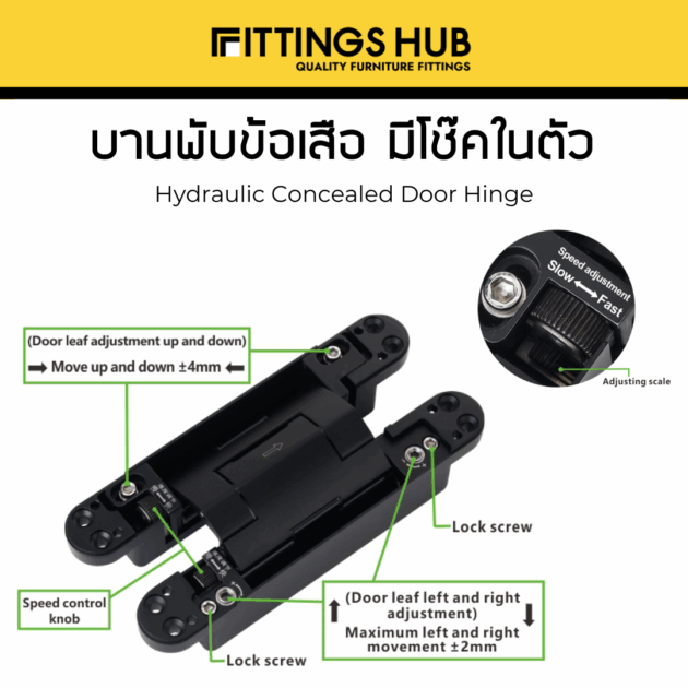บานพับข้อเสือ บานพับประตูติดซ่อน มีโช๊คไฮดรอริคในตัว – Fittingshub