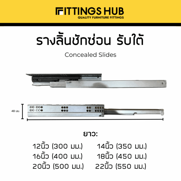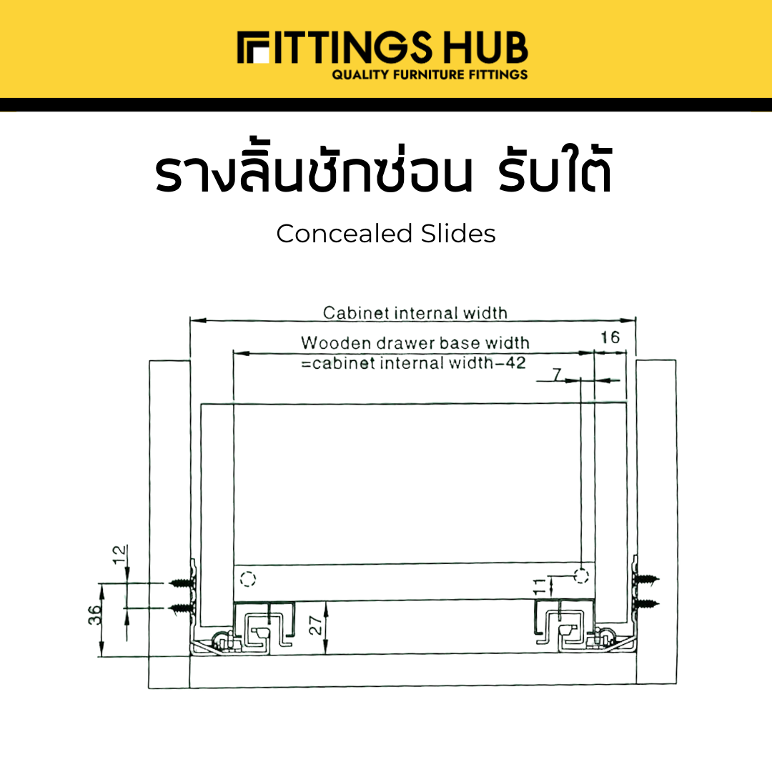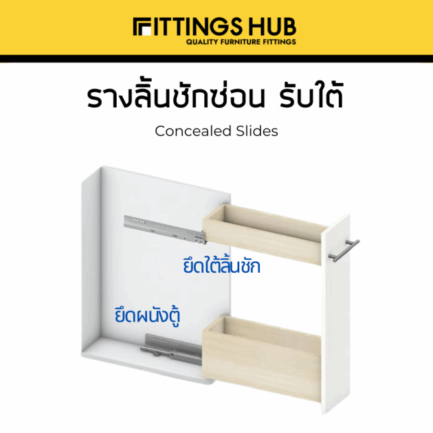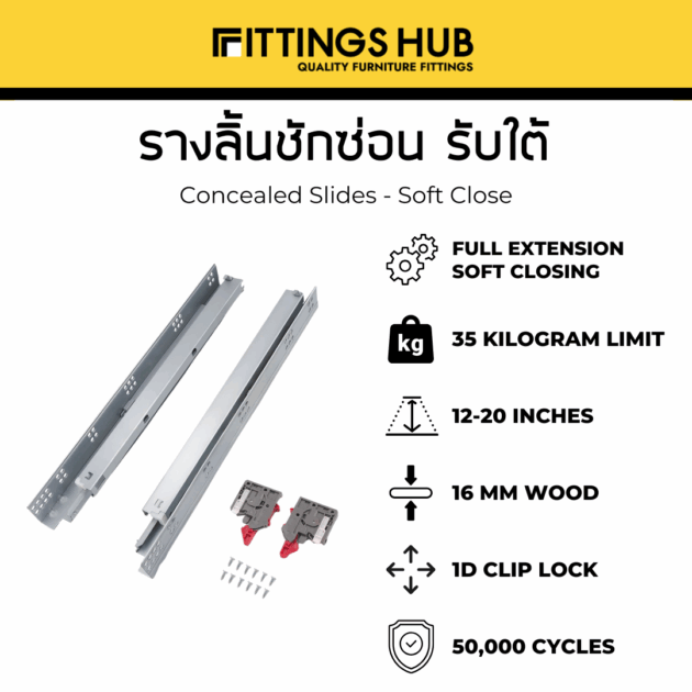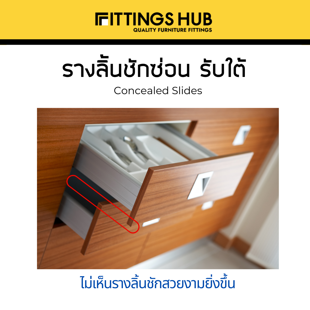 รางลิ้นชักซ่อน SOFT CLOSE / กดกระเด้ง Push open Under Mount พร้อมสกรู แข็งแรง ทนทาน FittingsHub